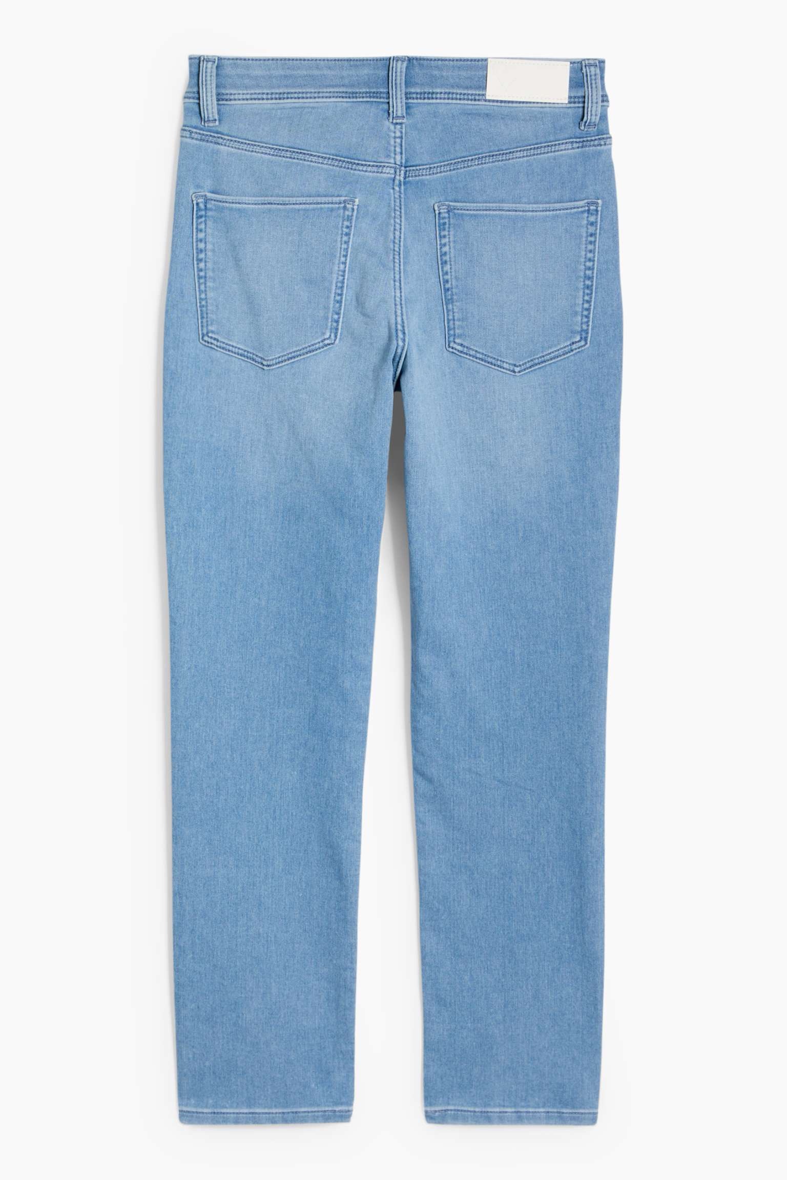 Slim fit jeans in very stretchy jog denim with whiskering and garment washed effects.