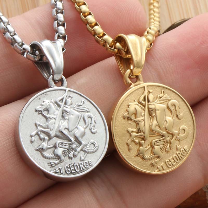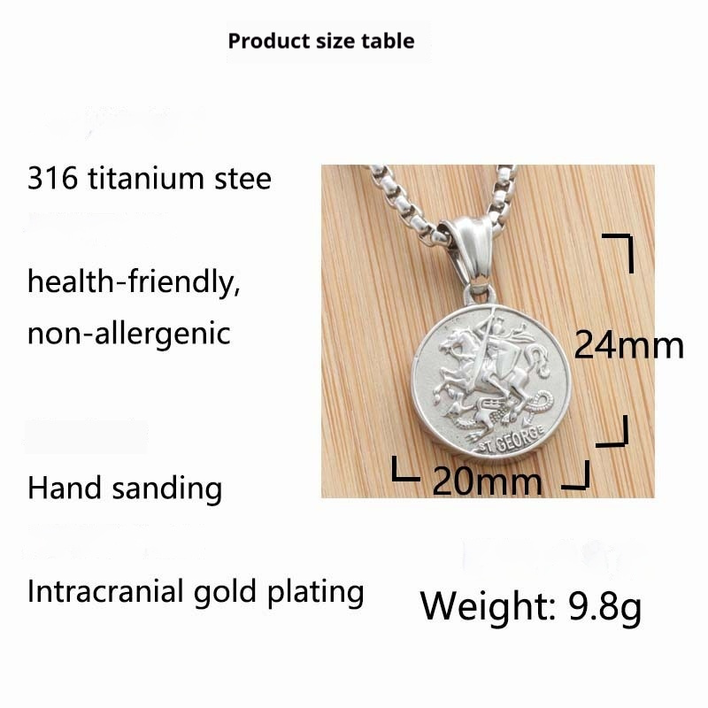Trendy Titanium Steel Knight Round Pendant Stainless Steel Necklace